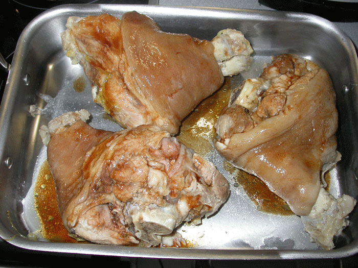 Main course / jarrets de porc laqués et leur purée de pois cassés + Châteauneuf-du-Pape Pegau 1998 (15 euros*) + Châteauneuf-du-Pape Vieux Donjon 1998 (11 euros*) + Châteauneuf-du-Pape Pierre André 1998