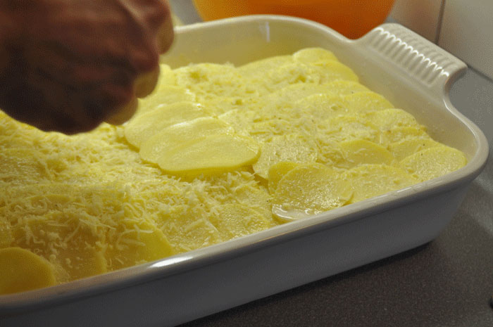 Main course / jarrets de porc confits et laqués + gratin dauphinois + Côtes du Roussillon Clos du Rouge Gorge 2010 L’Ubac + Corbières Maxime Magnon 2010 Campagnès